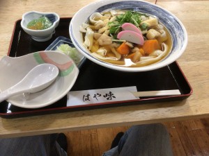 帰りに門の目の前の「はや味」で、群馬名物〈おっ切り込み〉を頂いた。おっ切り込みは甲州の〈ほうとう〉と兄弟分だが、味噌仕立てのヤンチャで荒削りの弟分に対して、ほのかに甘い出汁醤油に色鮮やかな野菜が散りばめられた几帳面な兄貴分(どちらが早く生まれたかは不明だが 笑)、キリッとした感じがまたよし。